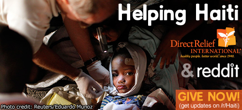 The Reddit team at Conde Nast is working with a charity called DirectRelief to help the earthquake victims in Haiti. DirectRelief can use your help. 100% of the donations made to them are going to Haiti response programs — no administrative overhead or fundraising charged against your gift. It’s all going to Haiti.